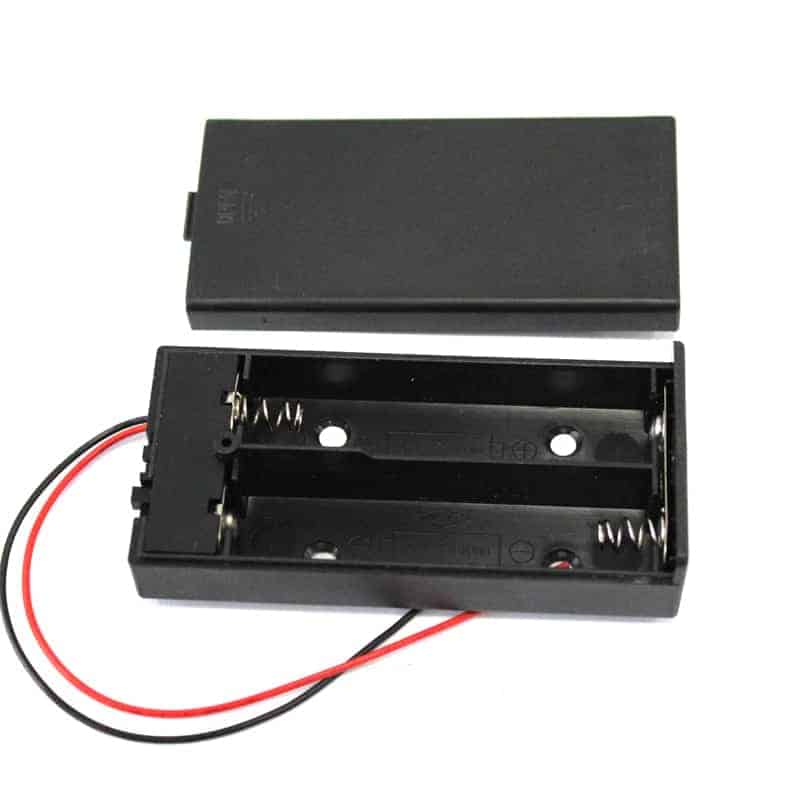 Battery holder for two 18650 3.7V batteries is ideal for LED and Arduino projects. The dual cell holder provides 7.4V output with an integrated power switch.