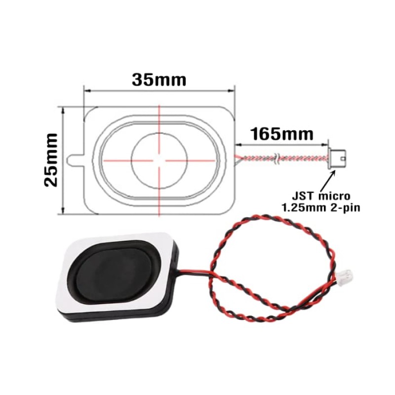 This is a premium low-cost speaker which enables adding audio to your projects easily. Produces impressive sound across the whole audio spectrum yet has an overall size of only 35mm x 25mm x 6mm (1.4-inch x 1-inch x 0.3-inch).