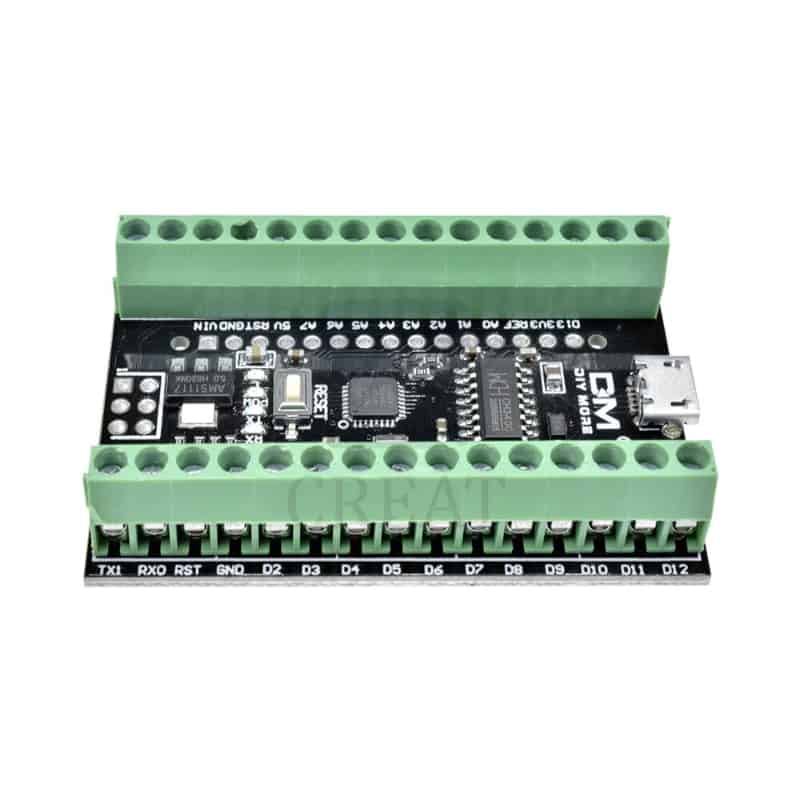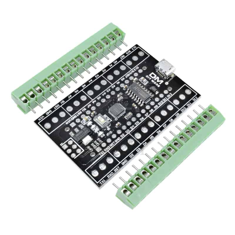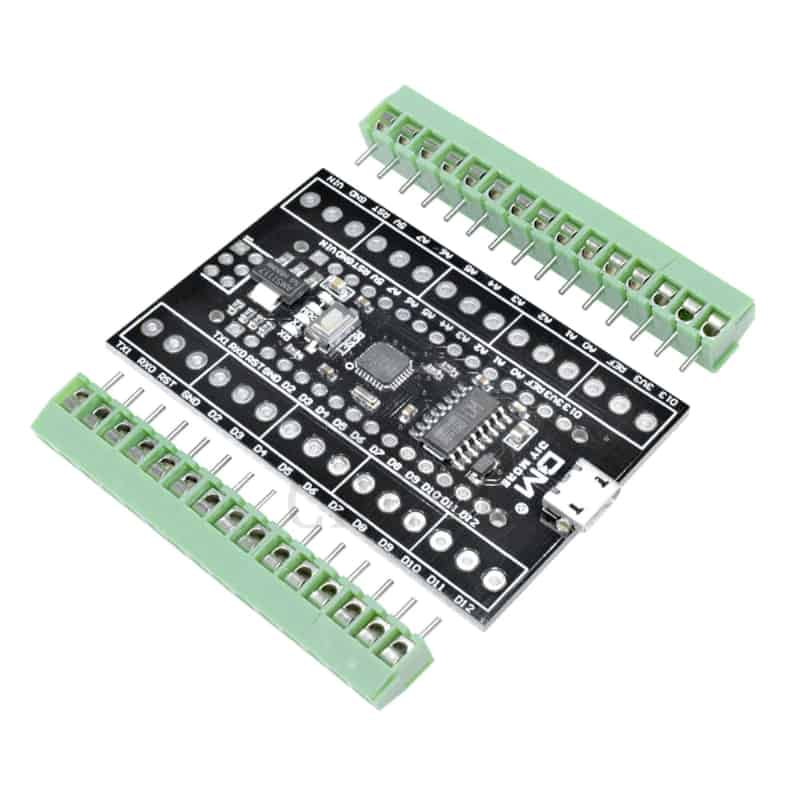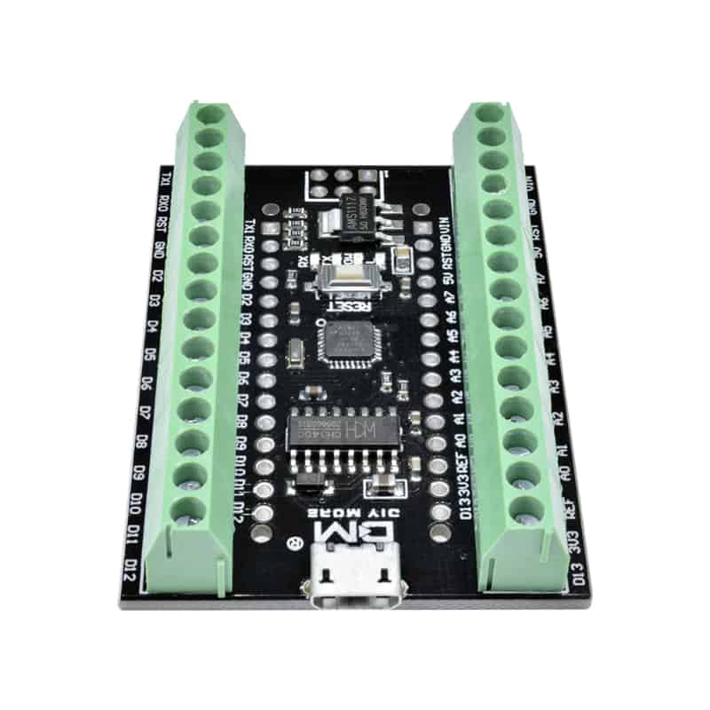 This Arduino Nano compatible module is a small, complete, system complete with screw-down terminals. Designed around the ATmega328 which is the same as the original Arduino Nano 3.